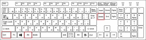 キーボードで[Ctrl]+[Alt]+[Delete]を押します。