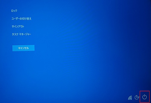 2. 表示された画面右下の[電源]アイコンをクリックします。