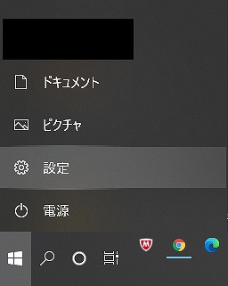 1.Windowsの設定画面をWindowsボタンから表示します。