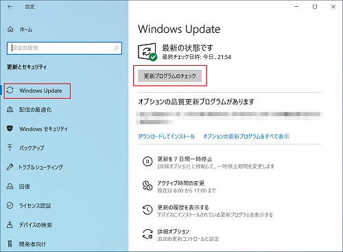 Windows Updateを確認し、万が一、自動的にアップデートできていない場合は、次の手順で、Windows Updateからのアップデートを完了させましょう。