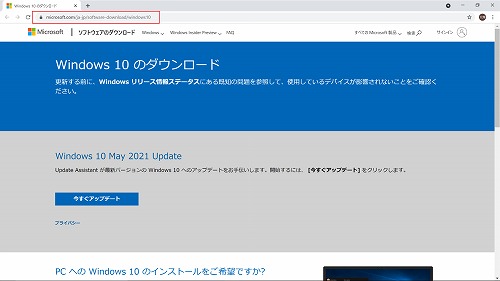 ここでは、「Windows 10 May 2020 Update (バージョン2004)」の更新プログラムを「Windows10のダウンロード」サイトからダウンロードし、手動アップデートの手順をご紹介します。